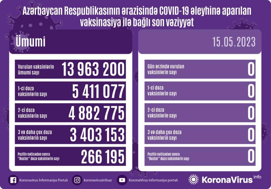 Azərbaycanda bu günə qədər vurulan vaksinlərin ümumi sayı isə 13 963 200 olub.