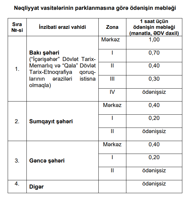 Parklanmaya görə ödənişlər TƏSDİQ EDİLDİ