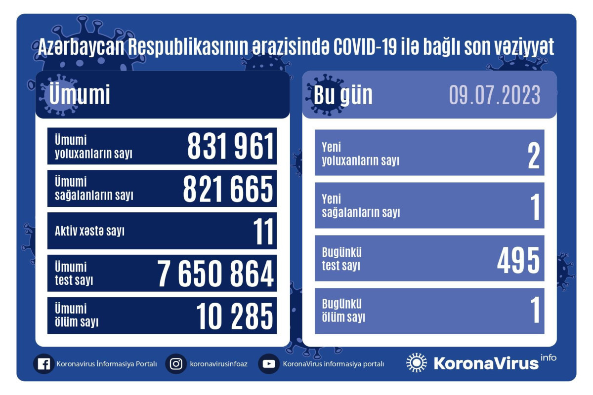 Azərbaycanda indiyədək ümumilikdə 831 961 nəfər koronavirus infeksiyasına yoluxub. Onlardan 821 665 nəfər müalicə olunaraq sağalıb, 10 285 nəfər vəfat edib, aktiv xəstə sayı 11 nəfərdir.