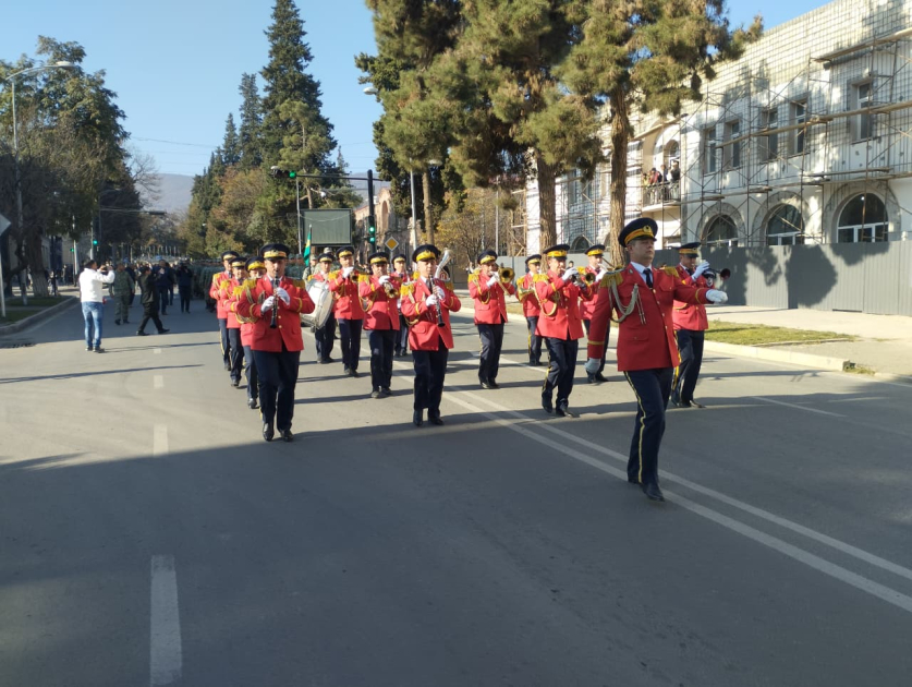 Xankəndi şəhərində, Ağdərə və Xocalı rayonlarında Bərpa, Tikinti və İdarəetmə Xidmətinin ictimaiyyətlə əlaqələr şöbəsindən Modern.az-a verilən məlumata görə, şəhərin mərkəzi küçəsində hərbi orkestrlərin müşayiəti ilə təşkil olunan yürüş bayram ab-havası yaradıb. Azərbaycan Silahlı Qüvvələrinin hərbi orkestri tərəfindən səsləndirilən vətənpərvər musiqilər yürüşə xüsusi ruh verib.