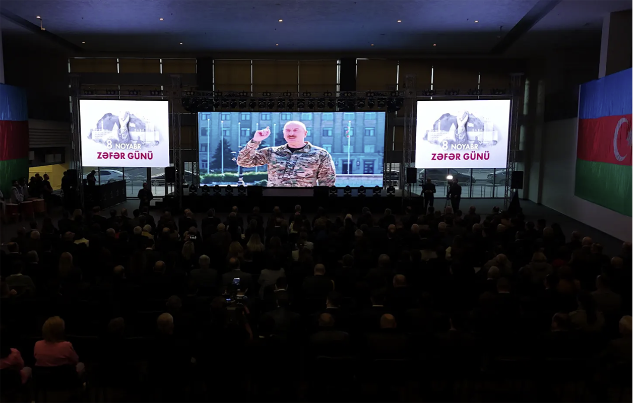 Yeni Azərbaycan Partiyası Binəqədi rayon təşkilatının sədri Vüsar İsmayılov çıxışında qeyd edib ki, 30 illik münaqişənin sona çatması, Azərbaycanın ərazi bütövlüyünün bərpası, Qarabağın azad edilməsi daha geniş coğrafiyanın reallıqlarının dəyişməsi ilə müşahidə olunub və olunmaqdadır. Ali Baş Komandan İlham Əliyevin rəhbərliyi ilə rəşadətli ordumuzun qələbəsi sayəsində Yer üzərində uzun sürən münaqişələrdən biri öz həllini tapıb. Azərbaycan haqqa, ədalətə çatmağın yolunu göstərib. Xalqımızın apardığı haqq mübarizəsi sayəsində bütün dünya gördü ki, Azərbaycan bir yumruq kimidir. 8 Noyabr tarixi daim tarixdə qızıl hərflərlə və əbədi qalacaq. Hər kəs bu möhtəşəm tarixlə qürurlanacaqdır. Tədbirin bədii hissəsində “Amarok” ritm qrupunun, Azərbaycanın xalq artisti Nəzakət Teymurovanın, Azərbaycanın əməkdar artisti Nurlan Növrəslinin, xalqımızın sevimli müğənniləri - Elnur Məmmədovun, Çinarə Məlikzadənin, Azərbaycan Dövlət Mədəniyyət və İncəsənət Universitetinin nəzdində Humanitar Kollecin müəllimi Yaqut Xəlilzadənin ifasında biri-birindən gözəl musiqilər səslənib. Azərbaycan Dövlət Rəqs Ansamblının ifasında möhtəşəm “Zəngəzur yallısı” nümayiş etdirilib.