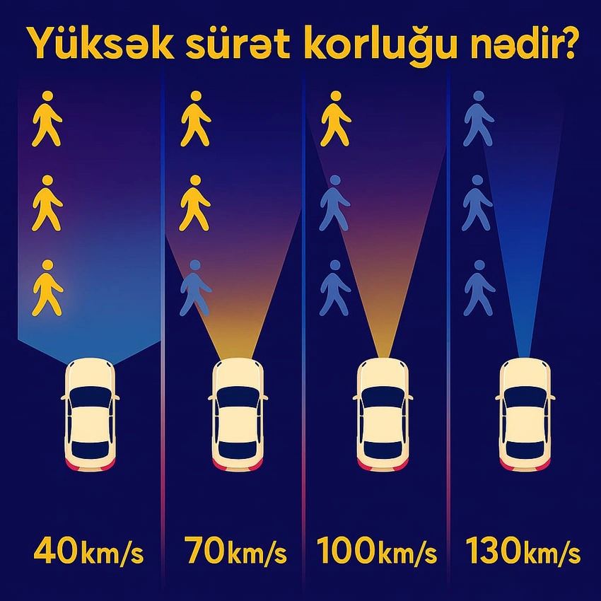 Yolda yüksək sürətlə hərəkət edən sürücülərin ətrafı qavrama qabiliyyəti kəskin zəifləyir.