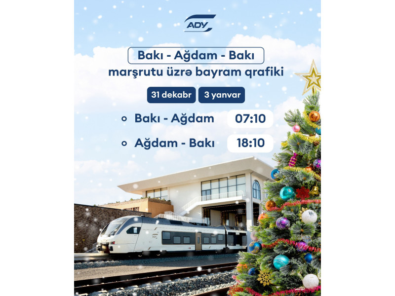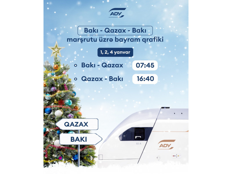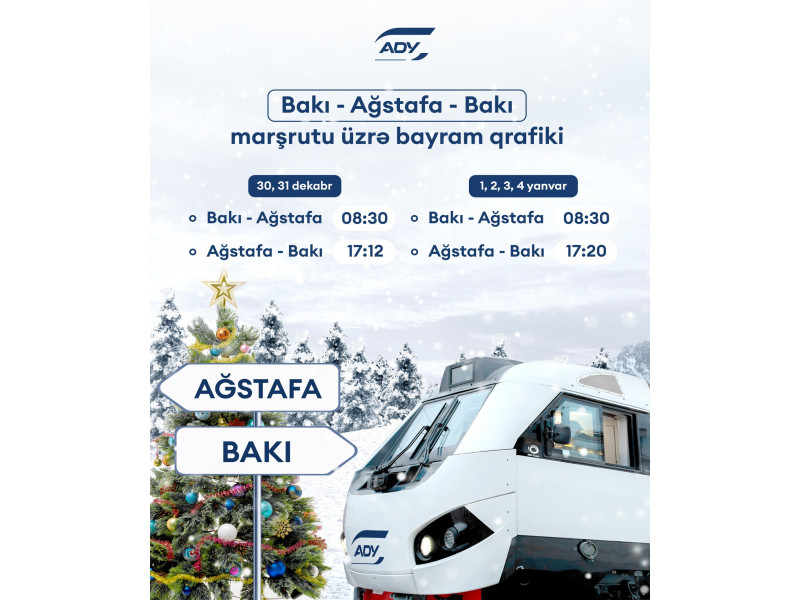 ADY-dən Modern.az-a verilən məlumata görə, 31 dekabr və 1, 2, 3 və 4 yanvar tarixlərində Bakı-Qəbələ-Bakı, 1, 2 və 4 yanvar tarixlərində Bakı-Qazax-Bakı, 30 və 31 dekabr, eləcə də 1, 2, 3 və 4 yanvar tarixlərində Bakı-Ağstafa-Bakı, 31 dekabr və 3 yanvar tarixlərində isə Bakı-Ağdam-Bakı marşrutları üzrə qatarlar hər iki istiqamətdə hərəkətdə olacaq.