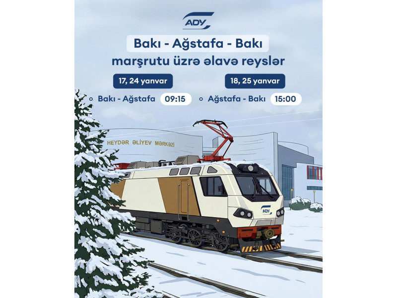 "Azərbaycan Dəmir Yolları" QSC (ADY) artan sərnişin tələbatını təmin etmək məqsədilə 17, 18, 24 və 25 yanvar tarixlərində Bakı-Ağstafa-Bakı istiqamətində endirimli qiymətlərlə əlavə qatar reysləri təyin edib.