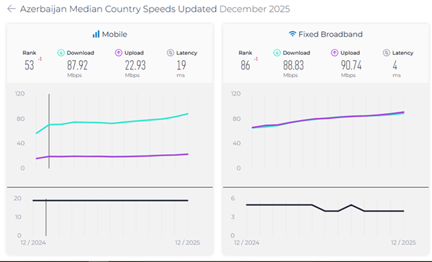 Genişzolaqlı və mobil şəbəkə keyfiyyətinin qiymətləndirilməsi üzrə qlobal şirkət olan “Ookla” dekabr ayı üzrə “Speedtest Global Index” hesabatını təqdim edib.