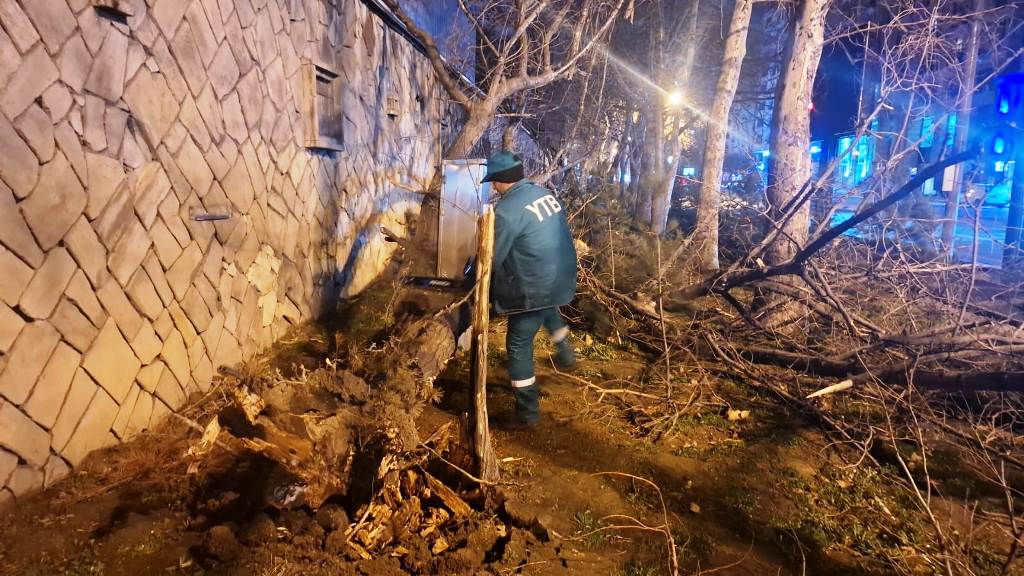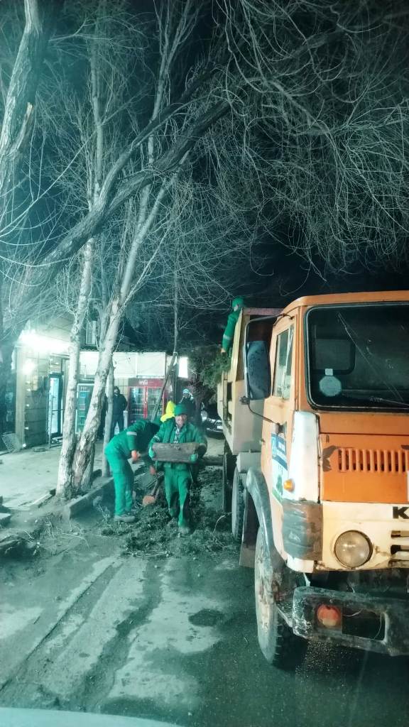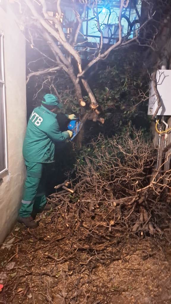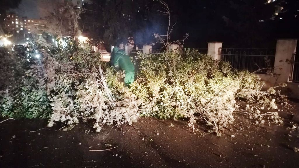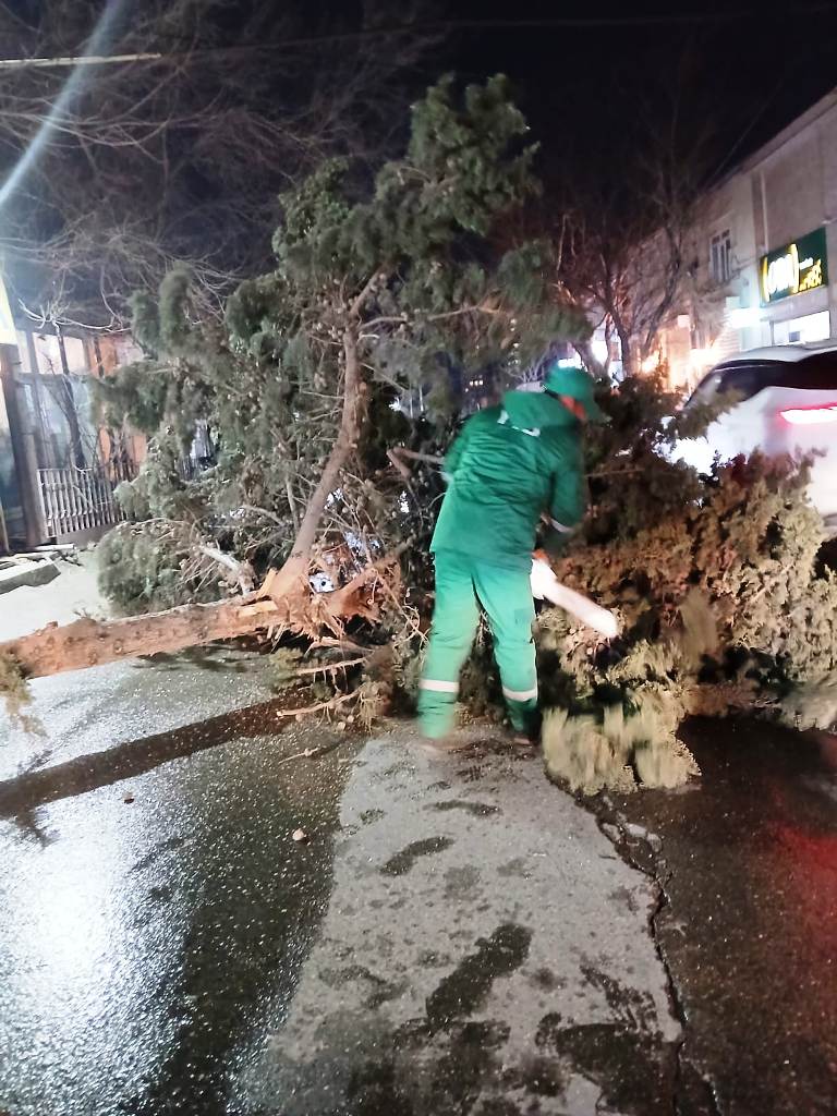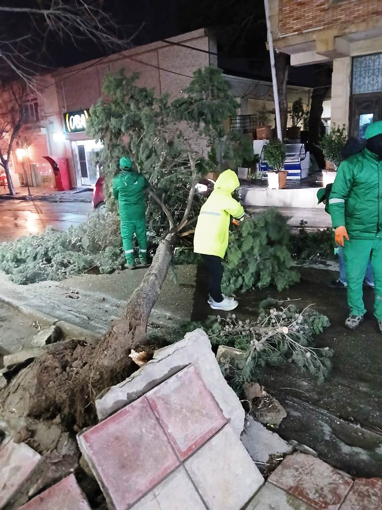 Birliyin növbətçi briqadaları sınan ağaclar və qırılan budaqları götürərək ərazini təmizləyiblər.