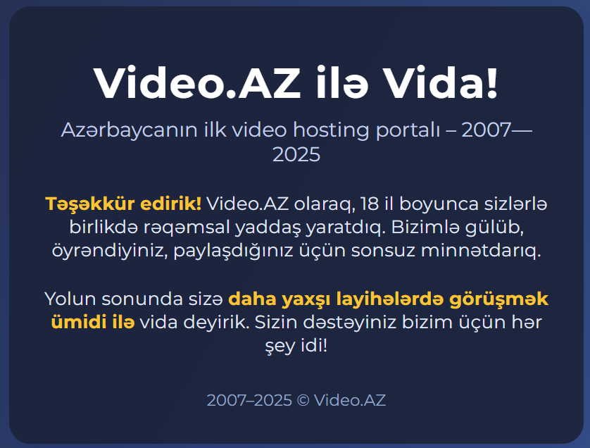 "Resursun davamlı xərc yükünün müqabilində qazanc qənaətbəxş olmadı. Kənar maddi dəstək də göstərilmədiyi üçün dayandırıldı. Milli İnternet Resursları yaratmaq fikrimiz varsa, nəinki belə portallar həmçinin elektron ünvan sonluğu, eləcə də digər xarici sosial şəbəkələrə alternativlər və data baza yaradılmalıdır".