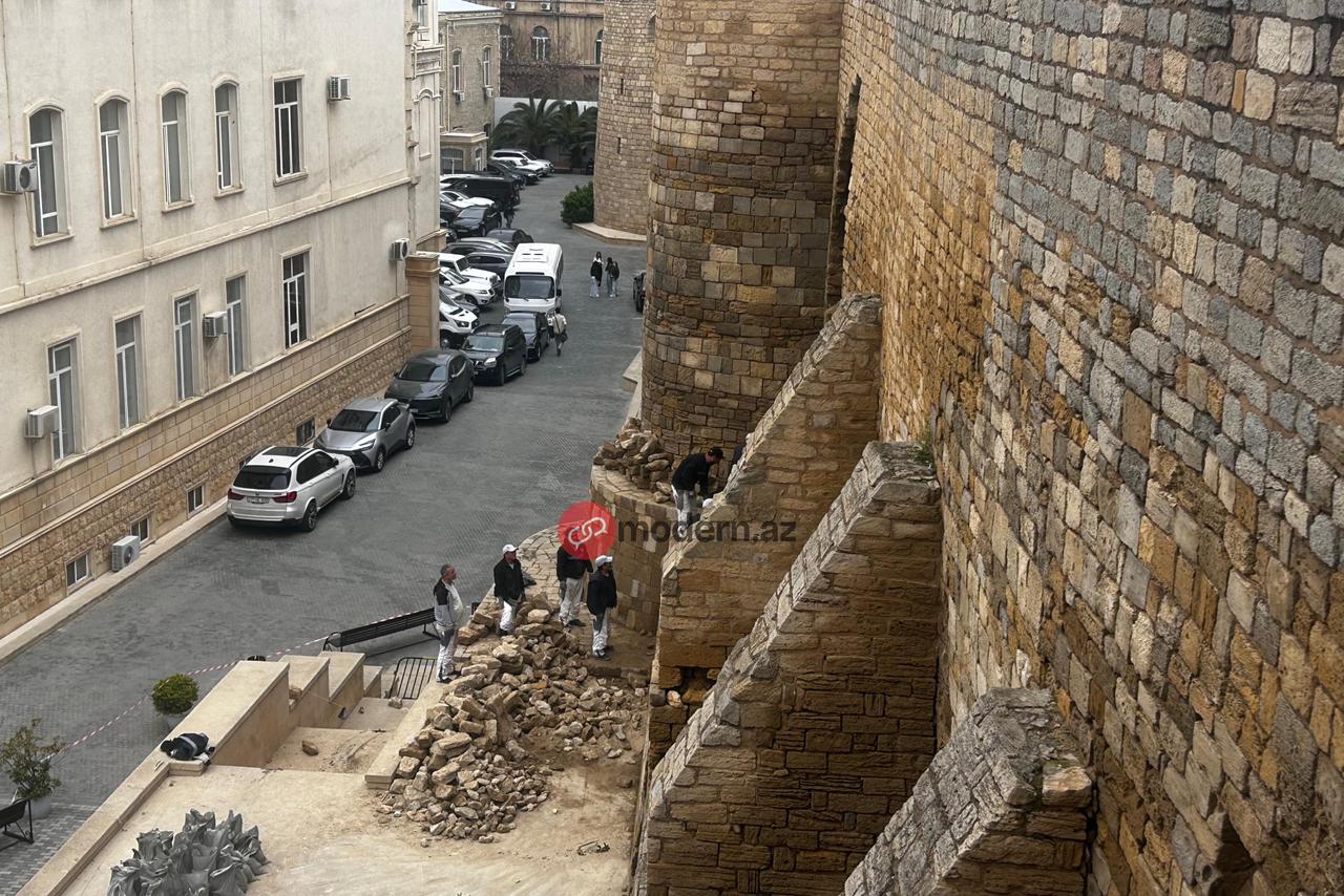 “İçərişəhər”də qala divarının bir hissəsində baş verən çökmə ilə bağlı ərazidə bərpa işlərinə başlanılıb.