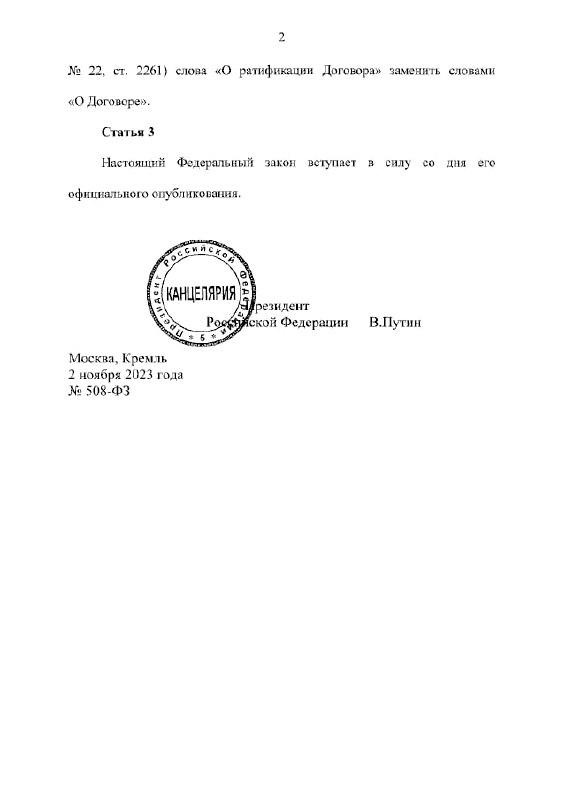 Modern.az Rusiya mətbuatına istinadən xəbər verir ki, ölkə prezidenti Vladimir Putin müqavilədən çıxmaqla bağlı müvafiq qanunu artıq imzalayıb.