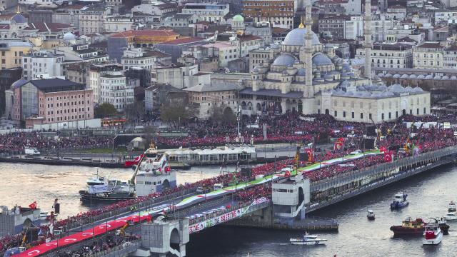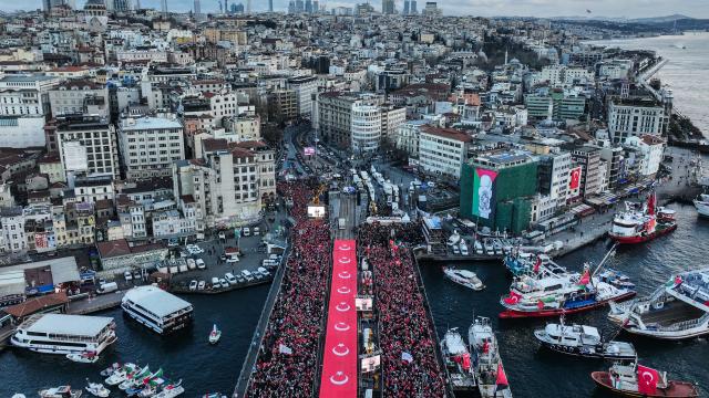 Modern.az xəbər verir ki, İstanbul şəhərində yerləşən Qalata körpüsündə keçirilən aksiyada 400-dən çox qeyri-hökumət təşkilatının iştirakı ilə təxminən 520 min nəfər qatılıb.