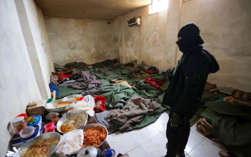 “Anadolu Agentliyi”nin komandası suriyalı əsgərlərin müşayiəti ilə Tabka həbsxanasının içərisindəki dəhlizləri, palataları, kameraları və tərk edilmiş əşyaları lentə alıb.