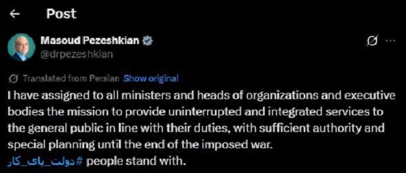 İran Prezidenti Məsud Pezeşkian X sosial şəbəkə hesabında paylaşım edib.