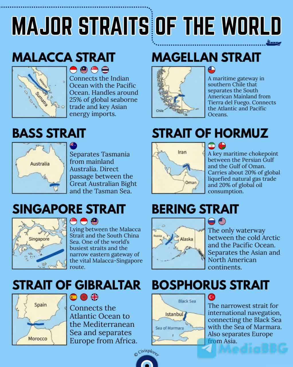 Modern.az-ın məlumatına görə, dünyanın ən mühüm dəniz boğazları aşağıdakılardır: