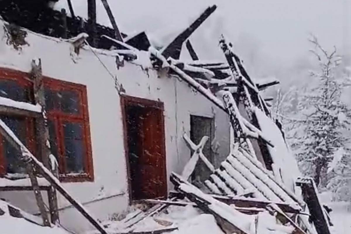 Lerik rayonunda qarın ağırlığına tab gətirməyən evin dam örtüyü dağılıb.