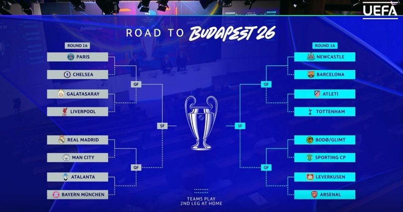 Püşkatmaya əsasən, Türkiyənin "Qalatasaray" klubu 1/8 finalda İngiltərənin “Liverpul” komadası ilə qarşılaşacaq.