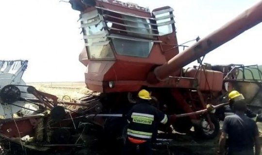 Oğuzda kombayn və taxıl zəmisi yandı