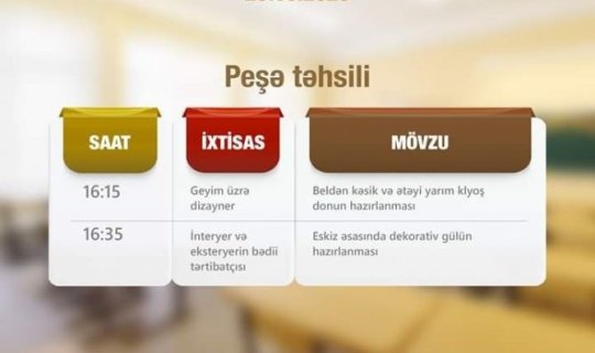 Peşə dərslərinin mayın 25-nə olan cədvəli açıqlanıb