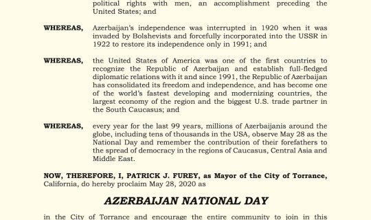 ABŞ-ın daha bir şəhəri 28 mayı “Azərbaycan Milli Günü” elan edib
