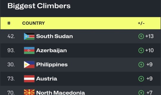 Azərbaycan reytinqdə irəlilədi