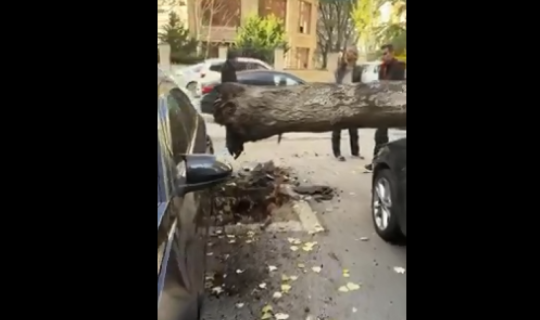 Bakıda ağac park edilmiş maşınların üzərinə düşdü -