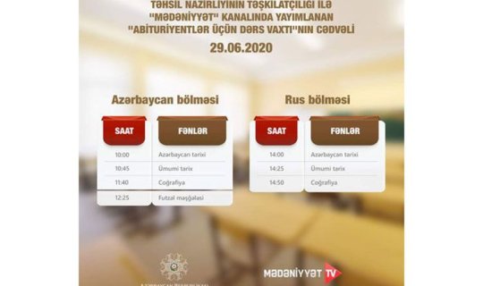 "Abituriyentlər üçün dərs vaxtı"nın sabaha olan cədvəli açıqlandı
