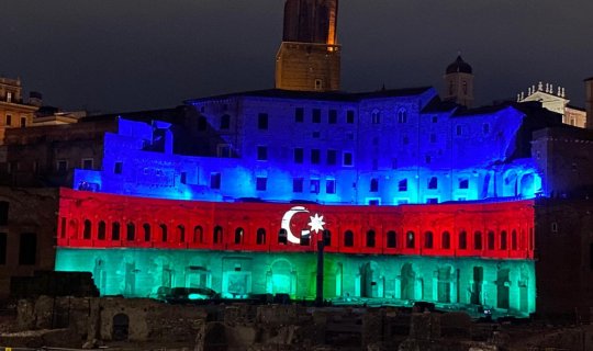 Qədim Romanın “Mercati di Traiano” abidə kompleksi Azərbaycan bayrağının rəngləri ilə işıqlandırılıb -