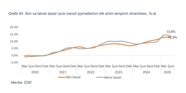 Sənədə əsasən, ilkin və təkrar bazar üzrə mənzil qiymətləri artmaqda davam edir.