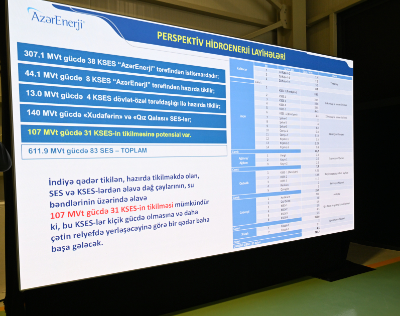 Bildirildi ki, işğaldan azad edilmiş ərazilərimizdə istismar olunan 307 MVt gücündə 38 Su Elektrik Stansiyasında 2025-ci ildə 750 milyon kilovat-saat yaşıl enerji istehsal edilib. Bununla da 160 milyon kubmetr təbii qaza qənaət olunub, 280 min ton karbon qazının atmosferə atılmasının qarşısı alınıb.
