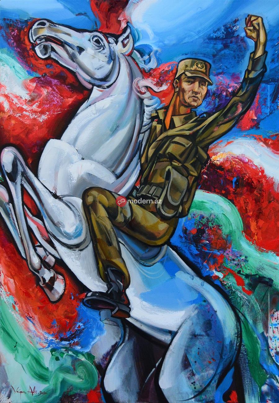 “Mir Azər Abdullayevin “İrəli” (2020), Rəşad Cabarovun “Qarabağ atı” (2021), Ülkər Quliyevanın “Qarabağ atları, Qarabağ xalçasının izi ilə” (2020), Cəlal Ağayevin “Zəfər atı” (2023) əsərləri azadlıq, qəhrəmanlıq və döyüş ruhunun, o cümlədən davamlılığın bədii rəmzinə çevrilmişdir”.