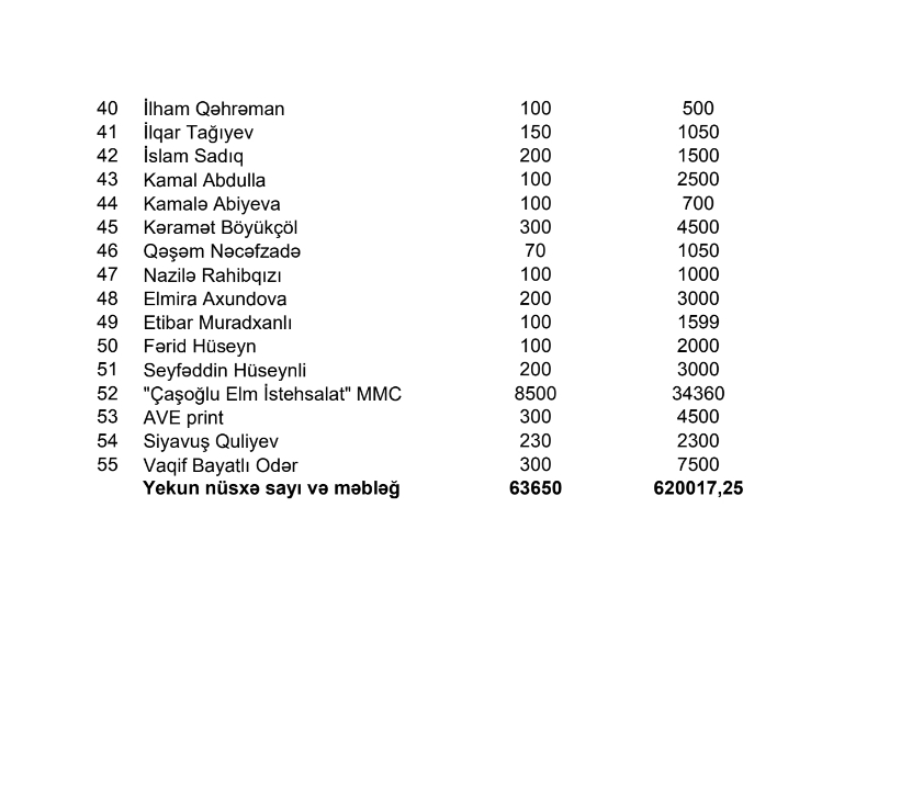 Bir sıra müəlliflərin əsərləri kitablarının buraxılışını həyata keçirən nəşriyyatlar (“Aspoliqraf”, “Təhsil”, “Zərdabi-nəşr” və s.) vasitəsilə alınmışdır.