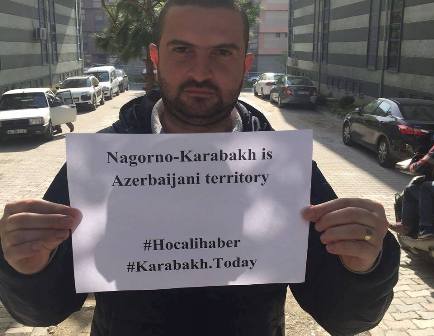 Aksiyada iştirak edən Türkiyə vətəndaşları Rəmzi Özyürək, Sinan Örən, Engin Yıldırım, Can Sədalı, Özgür Akman erməni zorakılığına, erməni terroruna qarşı əllərində kiçik plakatlarla etirazlarını bildiriblər.