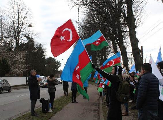 Danimarkada yaşayan azərbaycanlılar son günlər Ermənistan ordusu tərəfindən atəşkəsin pozulması və cəbhədə törətdikləri hərbi təxribatlara etiraz məqsədi ilə Ermənistanın Danimarkadakı səfirliyi qarşısında aksiya keçirib. Modern.az xəbər verir ki, Danimarkada fəaliyyət göstərən Azərbaycan diaspor təşkilatı “Vətən” Cəmiyyətinin təşkilatçılığı ilə baş tutan etiraz aksiyasında türk və türkmən diaspor təşkilatlarının nümayəndələri də iştirak edib.