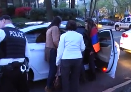 Erməni lobbisinin Vaşinqtonda Azərbaycan səfirliyi qarşısında keçirtdiyi aksiyanın sonunda aqressiv erməni qız maşınını azərbaycanlıların üstünə sürüb.
