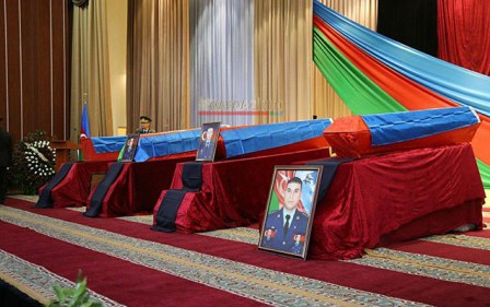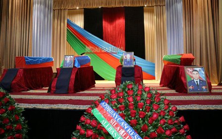Bu saatlarda Müdafiə Nazirliyinin Bakıdakı Təlim Tədris Mərkəzində 2 aprel döyüşlərində şəhid olmuş Mİ-24 helikopterinin şəhid pilotları, mayorlar Təbriz Musazadə, Urfan Vəlizadə və baş leytenant Bəkir İsmayılovla vida mərasimi keçirlir.