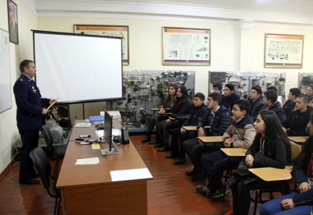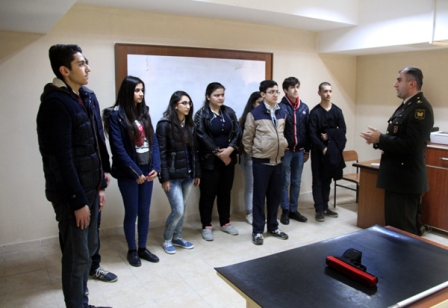 Burada şagirdlərə Azərbaycan Ali Hərbi Məktəbinin fəaliyyəti, hərbi kafedralarda döyüş texnikası, atıcı silahlar, onlardan istifadə qaydaları və s. haqqında məlumat verilib.