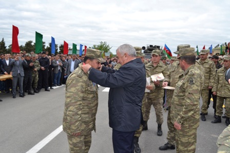 Sonra Azərbaycanın ərazi bütövlüyünün qorunub saxlanması, erməni işğalçılarının 2016-cı il aprelin 2-dən 5-dək qoşunların təmas xəttində törətdikləri silahlı təxribatların qarşısının alınması və düşmənin dinc əhaliyə hücumlarının dəf edilməsi zamanı göstərdikləri qəhrəmanlıq və igidliyə görə yüksək fəxri ada layiq görülən, orden və medallarla təltif olunan hərbçilərə Rayon İcra hakimiyyəti tərəfindən Fəxri Fərman və nişanlar təqdim edilib