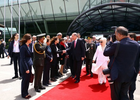 Türkiyənin Prezidenti Rəcəb Tayyib Ərdoğanı və xanımı Əminə Ərdoğanı hava limanında Azərbaycanın Baş nazirinin müavini Əli Əhmədov və digər rəsmi şəxslər yola saldılar.