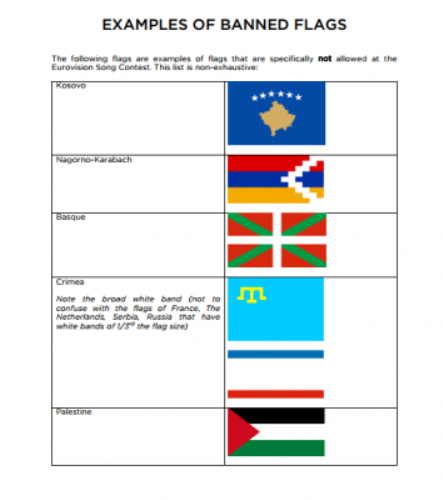 Modern.az saytı xarici KİV-ə istinadən xəbər verir ki, “Avroviziya” təkşilatçıları mayın əvvəllərində İsveçdə baş tutacaq yarımfinal və final konsertlərinə bəzi bayraqların gətirilməsini qadağan edib.