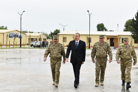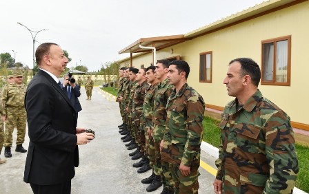 Prezident İlham Əliyev hərbi hissənin qərargahı, yeməkxanası və kazarması ilə tanış olub.