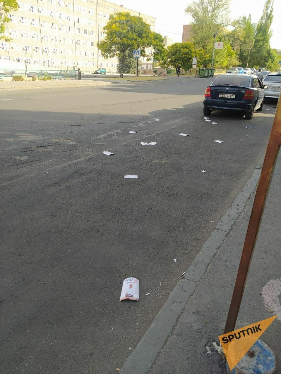 Belə ki, paytaxtın inzibati bölgələrindən birində üzərində Koçaryanın şəkilləri olan vərəqələr küçələrə səpilib.
