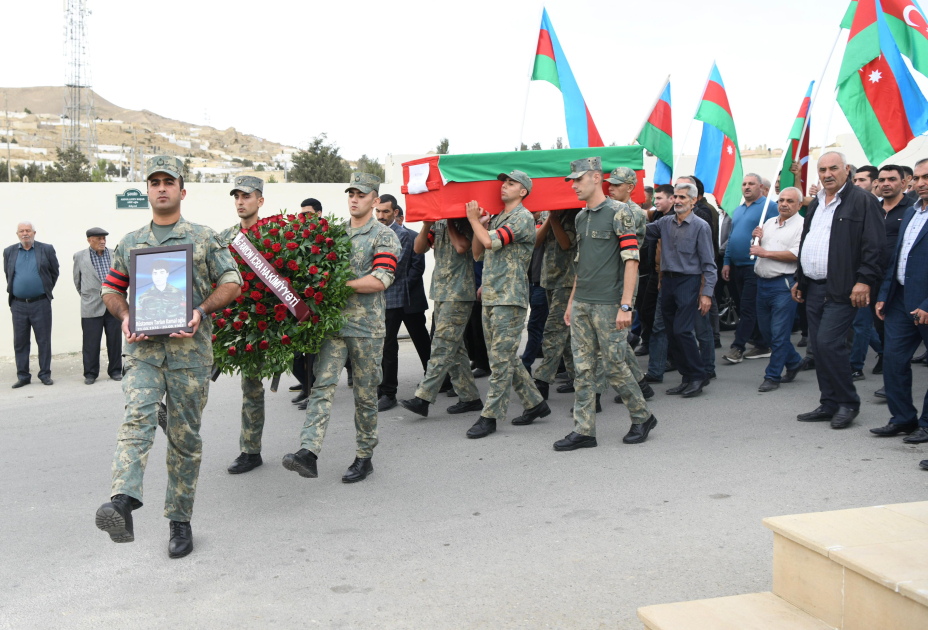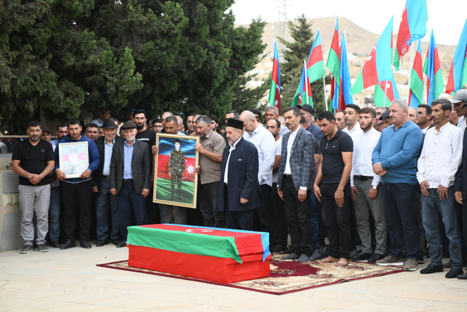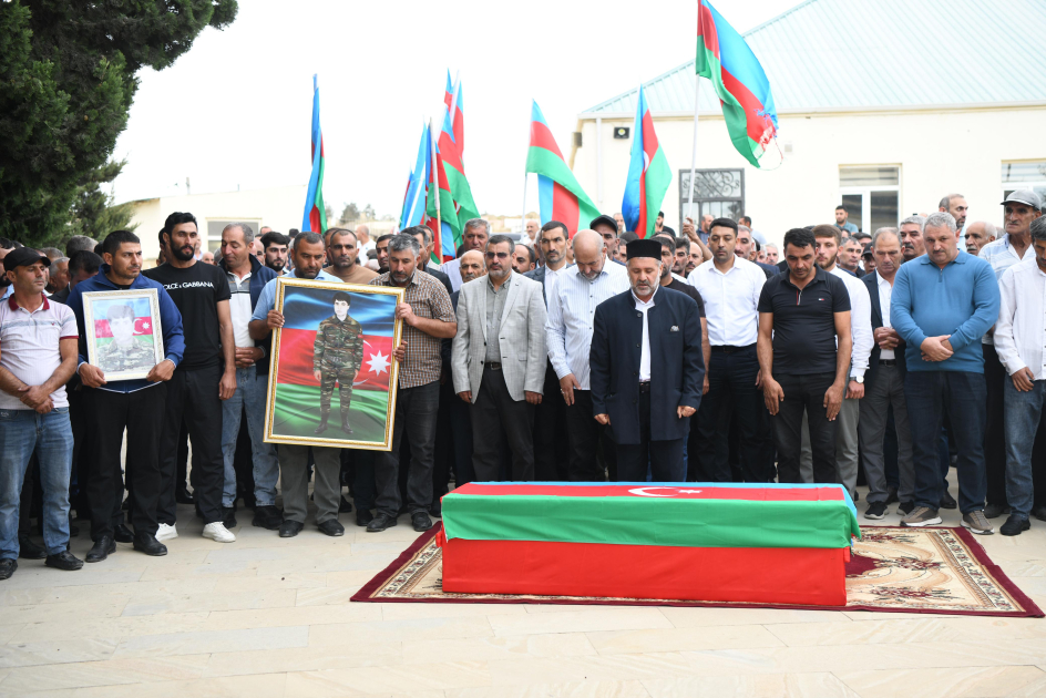 Şəhidin nəşi Dövlət Himinin sədaları və yaylım atəşi altında torpağa tapşırılıb.