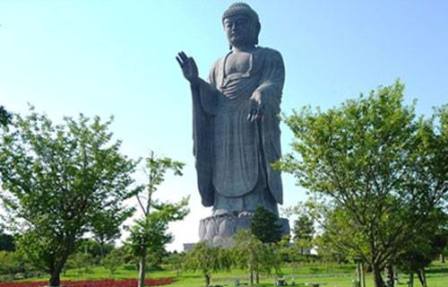 2. Sandai Daikannaon heykəli–Yaponiyanın Miyaqi əyalətindəki heykəlin hündürlüyü 330 metrdir. Bu heykəldə də Budda təsvir olunub. Heykəlin bir əlində mücəvhər o biri əlində isə su var. Çox kəskin diş və sifət quruluşuna sahibdir. Heykəlin altında 33 kiçik heykəl də var. Bu da qədim Şərq astronomiyasının təqvimlərlə bağlı simvolikasını özünə əks etdirir.