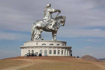 6. ”Çingiz xan” heykəli - Bu heykəl isə bütün Monqolustanın simvolu sayılır. Paytaxt Ulanbatordan bir saatlıq uzaqlıqda yerləşir. Çölün ortasında inşa olunan nəhəng heykəl kompleksi hər kıəsi heyrətləndirir. Binanın üzərində qurulan heykəlin hündürlüyü 40 metrdir. Liftlə heykələ qalxan ziyarətçilər atın başına doğru gəlməklə böyük bozqırları izləyə bilirlər.