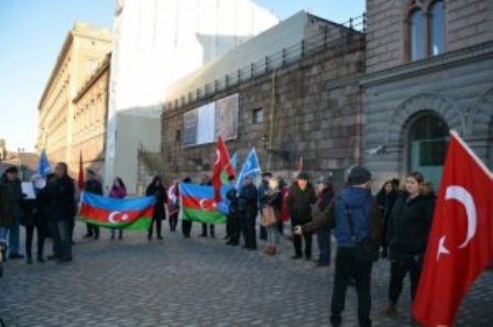 Bu gün İsveçin paytaxtı Stokholmda türk və Azərbaycan diaspor təşkilatlarının nümayəndələri ölkə parlamentinin (Riksdaq) binası qarşısında etiraz aksiyası keçiriblər. Modern.az saytı Azərtac-a istinadən xəbər verir ki, aksiyanın keçirilməsində məqsəd İsveç parlamentinin qondarma “erməni soyqırımı”nı tanınmasına qarşı etiraz etmək idi.