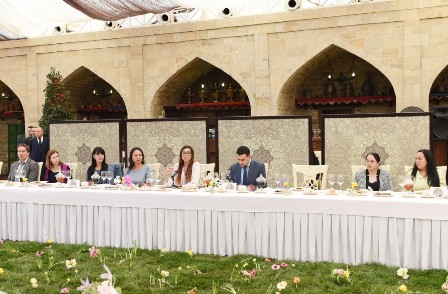Sonda xatirə şəkli çəkdirildi. Diplomatik missiya rəhbərlərinin həyat yoldaşlarına Novruz sovqatları təqdim olundu.