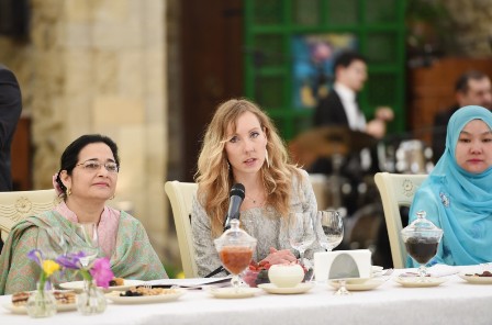 Asima Qayser deyib: "Hörmətli Azərbaycan Respublikasının birinci xanımı, Heydər Əliyev Fondunun prezidenti Mehriban Əliyeva. Əziz Diplomatik Missiya Rəhbərlərinin Həyat Yoldaşları Təşkilatının üzvləri, sabahınız xeyir. İcazə verin, çıxışımı bizim hamımıza şərəf verdiyinə görə xanım Mehriban Əliyevaya dərin minnətdarlığımı ifadə etməklə başlayım.