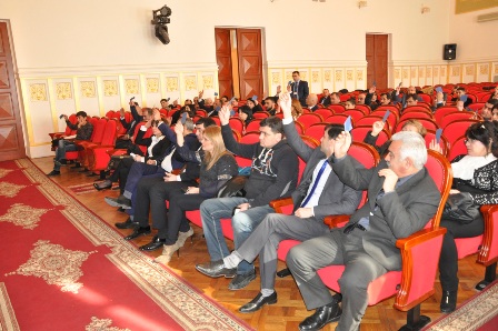 Sonra say komissiyasının 3 nəfərdən ibarət tərkibi müəyyən edilib. Hafiz Həsənov iclasda qeydə alınmış 63 QHT nümayəndəsindən 58-nin iştirak etdiyini deyib və təşkilati-texniki işlər haqqında ətraflı məlumat verib.
