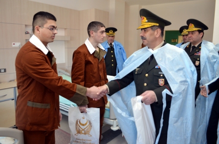 Müdafiə Nazirliyinin rəhbərliyi tərəfindən hərbi qulluqçulara bayram sovqatları təqdim edilib və tezliklə sağalaraq xidmət yerlərinə qayıtmaları arzu olunub.