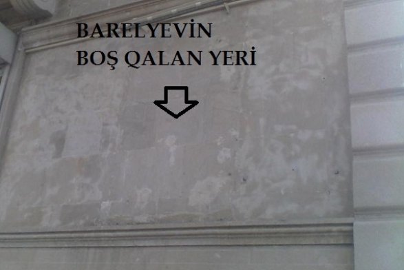 Modern.az saytı virtualaz.org-a istinadən xəbər verir ki, barelyefi söküb və yerini də elə yamayıblar ki, sanki burada heç nə olmayıb.