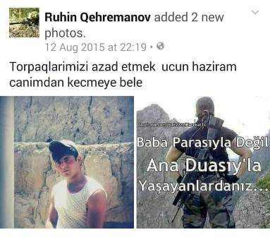 O, ötən ilin avqustunda paylaşdığı statusda torpaqlarımızı azad etmək üçün canından keçməyə hazır olduğunu qeyd edib.